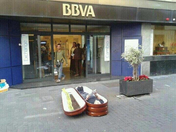 Los desahucios son cada vez menos efectivos, además del incremento de suicidios que ha provocado una fuerte sensibilización de la ciudadanía, la Plataforma de Afectados por la Hipoteca (PAH) ha conseguido evitar 568 y asesora a miles de víctimas del genocidio financiero. En Pamplona han sido los gremios de cerrajeros quienes se oponen a acompañar a la policía y a los banqueros a la realización de los desahucios y varios jueces se han negado a firmar las órdenes para los desalojos.