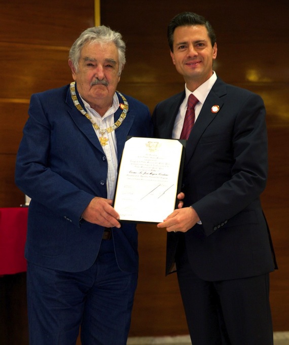 La Habana, 28 ene (dpa) – El presidente de México, Enrique Peña Nieto, calificó hoy a su par uruguayo, José Mujica, de “gran estadista de nuestro siglo” al condecorarlo con la Orden del Águila Azteca, en un acto paralelo a la cumbre de CELAC de La Habana.
